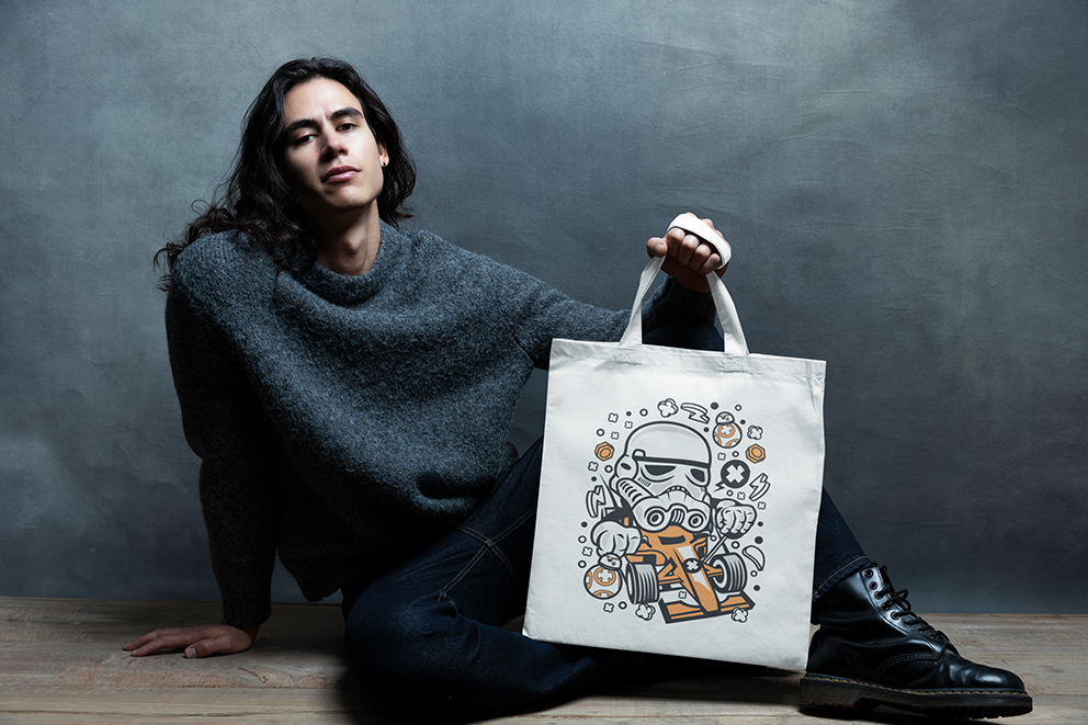Este Stormtrooper se ha cansado de caminar por pasillos metálicos y se ha calzado un coche de Fórmula 1 galáctico. Con su casco de siempre pero un mono de carreras naranja fuego, está listo para tomar las curvas a la velocidad de la luz mientras esquiva tornillos, rayos y nubes de humo. ¡Es la 03 BOLSA TROOPER FORMULA RACER, el accesorio definitivo para los que viven la vida a 300 parsecs por hora!