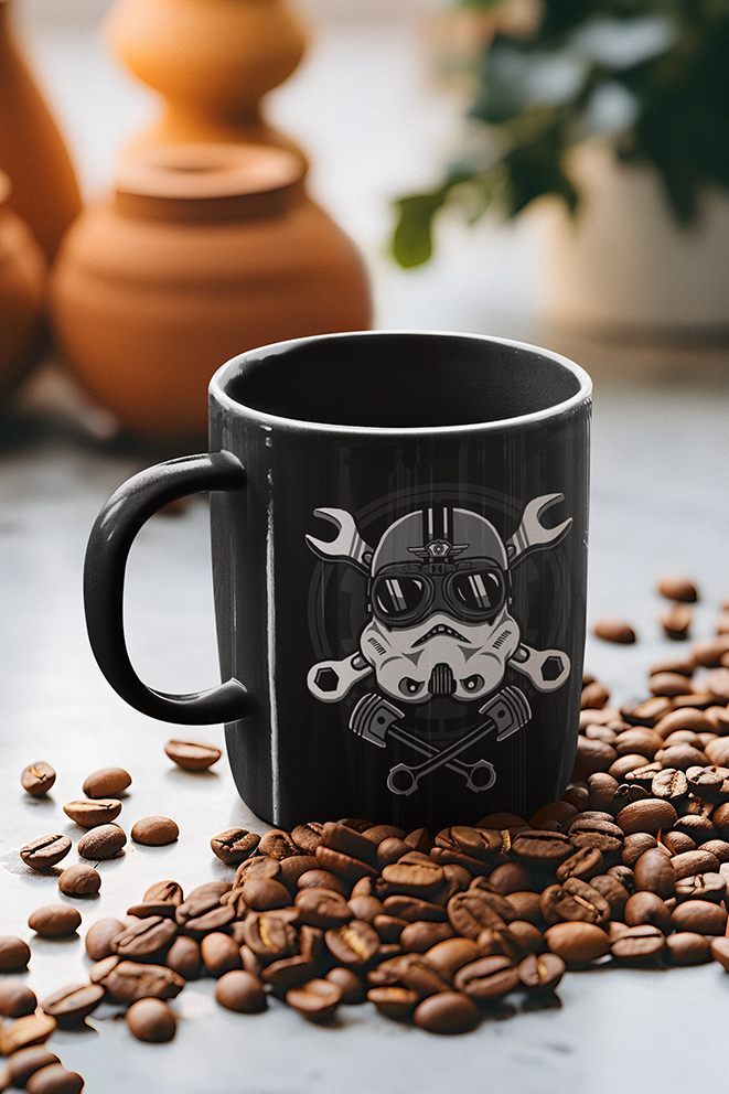 Su verdadera debilidad es la falta de café. Necesita esta 03 TAZA STORMTROOPER RACER para su dosis de óxido nitroso matutino. Sin ella, confunde el depósito de combustible con la tetera y empieza a ponerle aceite de motor a los cereales. ¡Es el mecánico que nadie querría contratar, pero el piloto más divertido de ver explotar!