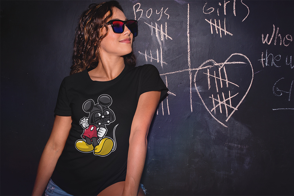 ¡En una galaxia no tan lejana, llega Dark Mouse! ¿Qué pasa cuando mezclas a un ratón famoso y adorable con el lado oscuro de la Fuerza? Pues lo tienes delante: pantalones rojos, zapatones amarillos, orejas redondeadas… ¡y una máscara de villano intergaláctico! Puede que no lleve capa, pero te aseguro que impone con ese casco.