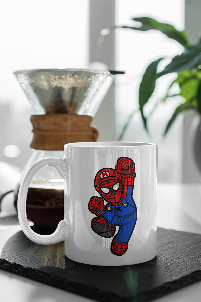 Necesita esta 14 TAZA SPIDER PLUMBER para su dosis de cafeína antes de entrar en el Reino Champiñón. Sin su café, confunde a Bowser con el Doctor Octopus y se pone a lanzarle cáscaras de plátano en vez de redes.